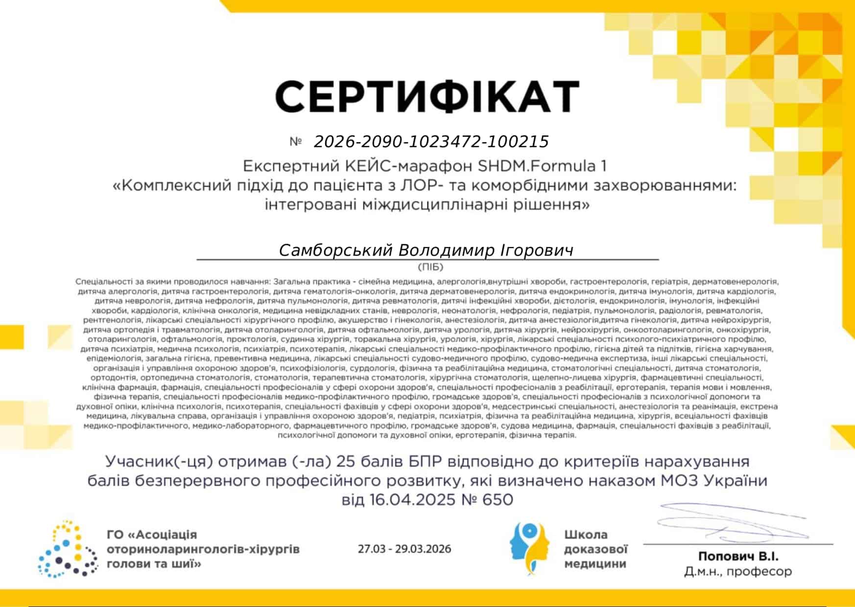© 2025 Самборський Володимир Ігорович — лікар-оториноларинголог